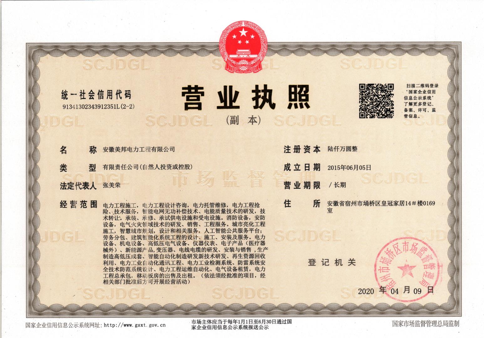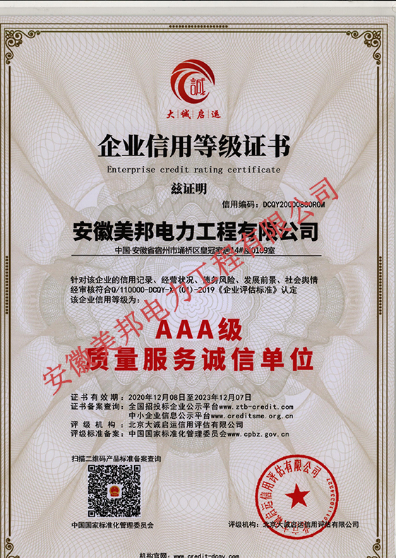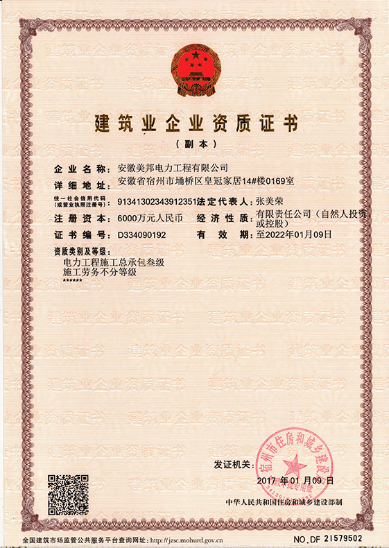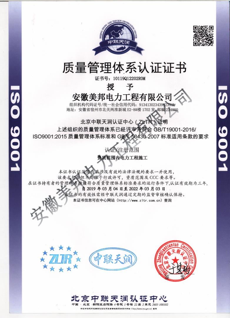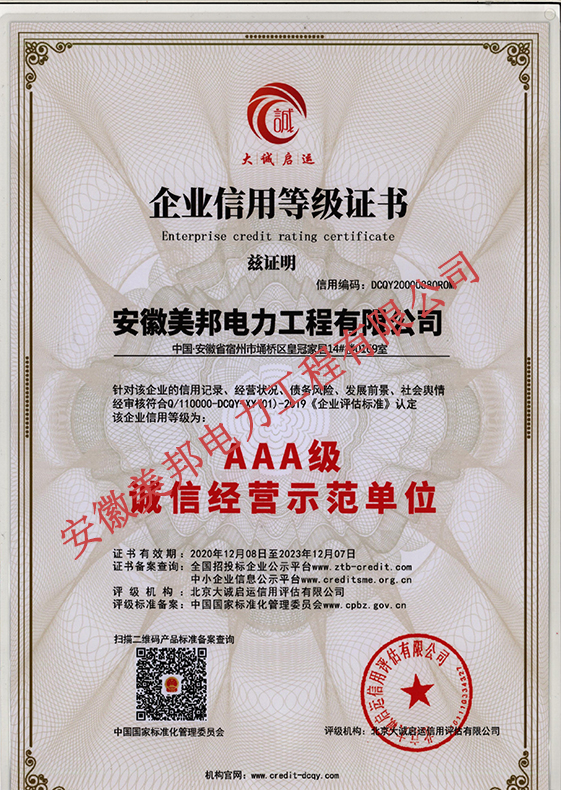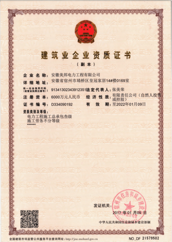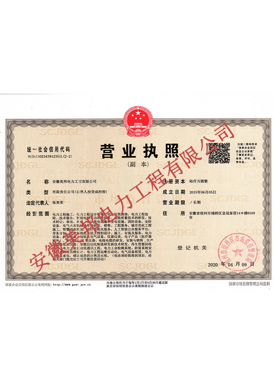 安徽美邦電力工程有限公司成立于2015年6月,坐落于宿州高新區(qū)。是一家從事電力工程設(shè)計(jì)、電力設(shè)備生產(chǎn)、電力工程施工、電力托管服務(wù)、電力工程搶險(xiǎn)為一體的一站式綜合性公司。公司現(xiàn)有各類專業(yè)技術(shù)職稱的管理人員及大批從事電力工程專業(yè)施…